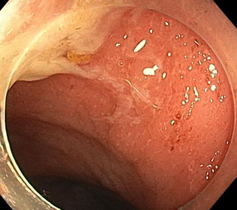 長期にわたり痔の軟膏を使っていたが、内視鏡検査を機に潰瘍性大腸炎を診断された、 S状結腸(おしりから15cm程度の場所)では強い炎症があるが、直腸(おしりから入ってすぐの場所)では炎症があまりない